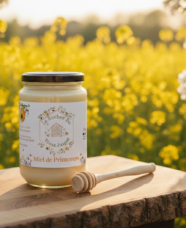 Sa couleur claire et sa texture crémeuse proviennent de la forte présence de colza, fleur dominante au printemps dans notre région. Cela lui donne un goût délicat, rond et légèrement parfumé , très apprécié des petits comme des grands.